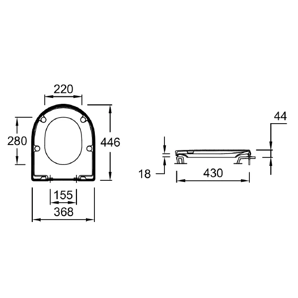 Abattant thermodur, charnières inox, sans frein de chute