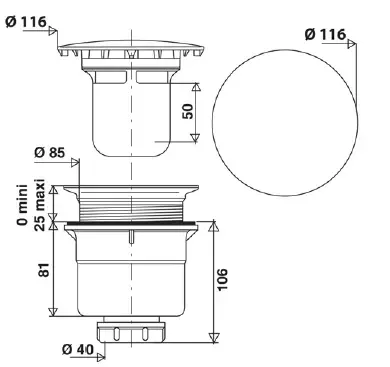 Accueil > Divers > Bonde sortie verticale Ø90mm Chromé - JACOB DELAFON Réf. E6761-CP