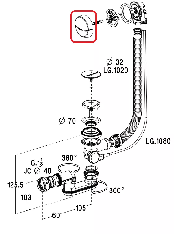 Bouton commande chromé de vidage E70174-CP - Jacob Delafon Réf. E8A064-CP