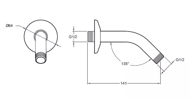 Bras 45° pour douche de tête Moxie, fixation murale.
