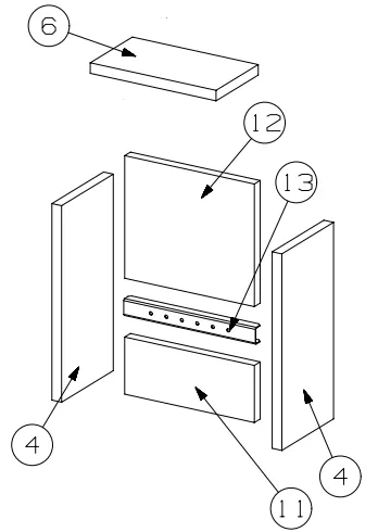 kit de 5 briques : sur schéma en photo numéro 4 x 2 unités + 6 + 11 + 12
