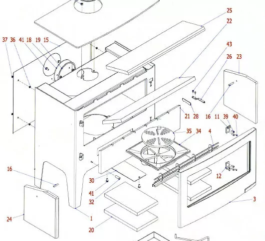 Kit complet de 9 pièces de foyer en vermiculite : numéros 20 + 21 + 22 + 23 + 24 + 25 sur schéma en photo