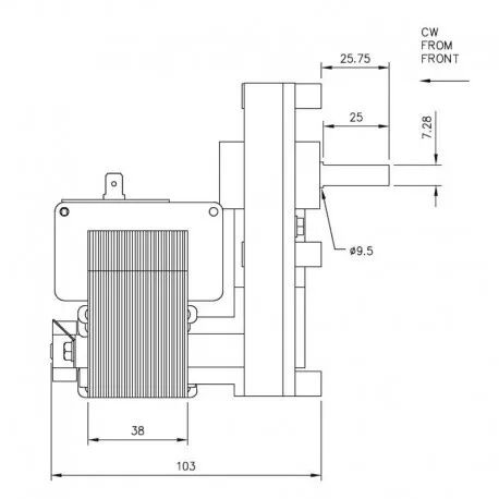 Axe (arbre) 9,5 mm - Vitesse 5.3 tours/minute - Puissance 43 watts - Alimentation 220V - Couple de serrage 28 Nm
