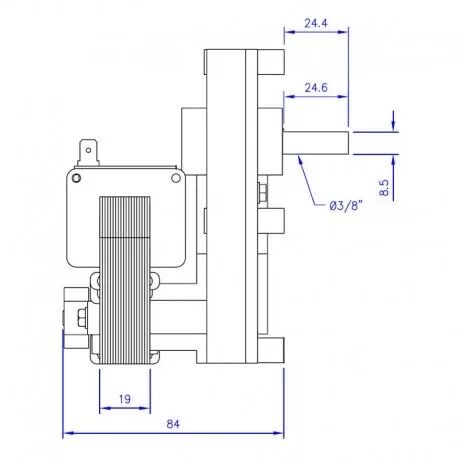 Axe (arbre) 9,5 mm - Vitesse 1.5 tours/minute - Puissance 19 watts - Alimentation 220V - Couple de serrage 23 Nm