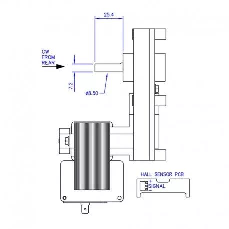 Axe (arbre) 8,5 mm - Vitesse 3 tours/minute - Puissance 25 watts - Alimentation 220V - Couple de serrage 26 Nm