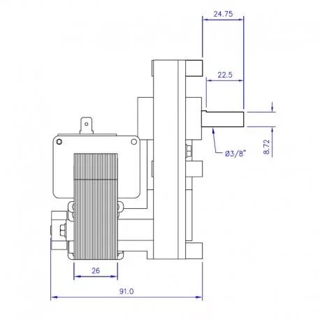 Axe (arbre) 9,5 mm - Vitesse 2 tours/minute - Puissance 18 watts - Alimentation 220V - Couple de serrage 23 Nm