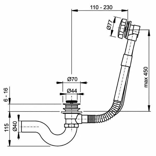 Vidage complet chromé à câble avec bonde à recouvrement - JACOB DELAFON Réf. E70174-CP (SUIVI)